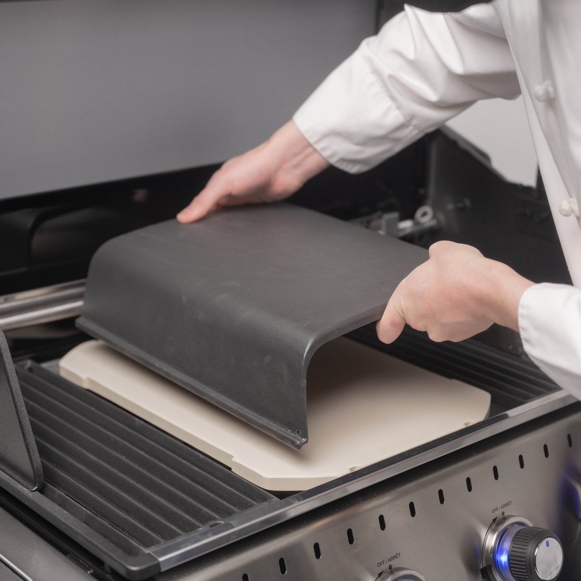 This cooking dome is perfect for crisping pizza, or melting cheese. Designed from heavy cast iron and coated with a durable matte porcelain finish. The dome integrates with the 69842 Rectangular Pizza Stone or 11242 cast iron griddle to trap heat downwards and radiate it onto what you’re baking on your grill.