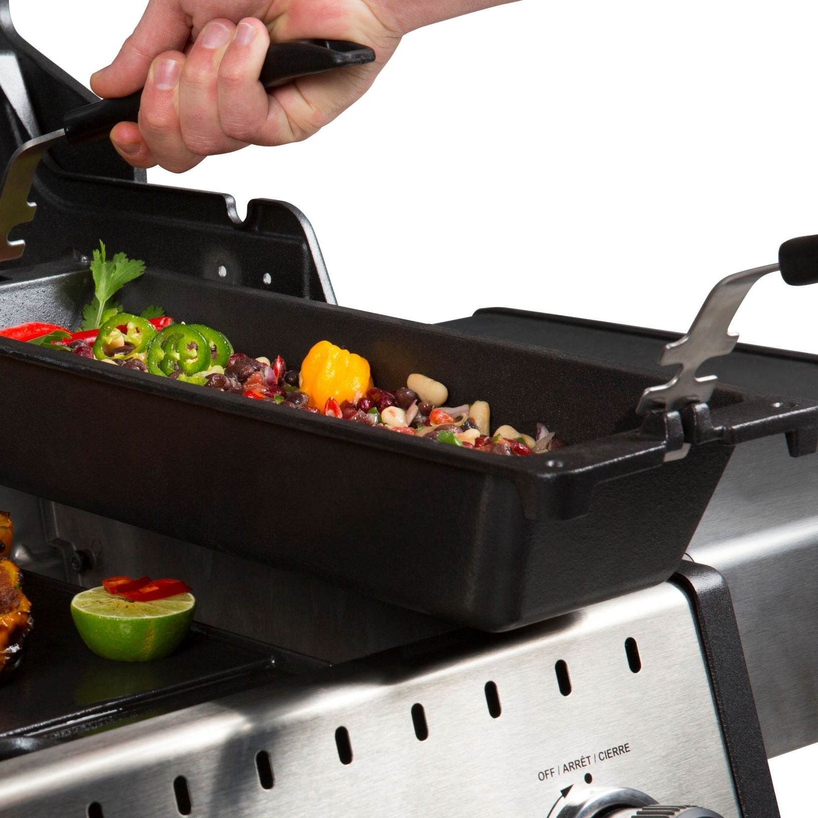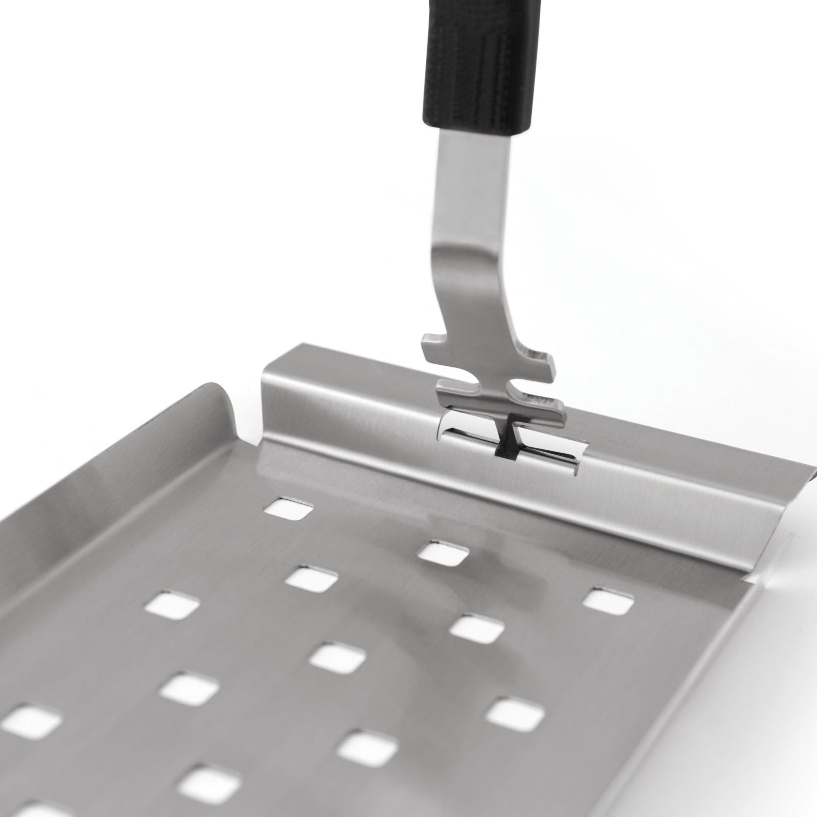 The new simplified grid lifter removes both cast and stainless cooking grids in Broil King® grills. One set of tines to remove cast and another to remove stainless cooking grids. Stainless tip, resin handle.